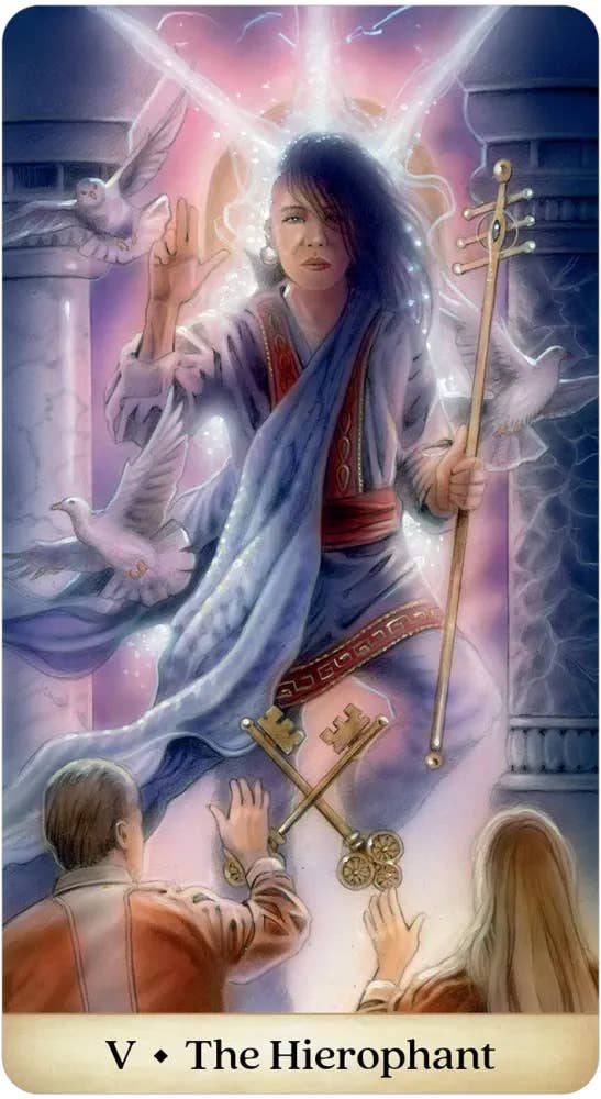 The Calandra Tarot deck, created by fantasy artist Michael Calandra, is a mesmerizing work of luminous imagery inspired by traditional tarot. Calandra’s hand-drawn art showcases depth, texture, and a palette of soft, glowing colors, resulting in a tarot deck that is both visually stunning and spiritually evocative. Each card was intricately designed by the artist using traditional mediums of airbrush, acrylic paint, and colored pencils. The 80-card deck includes two additional cards that explore the duality of life: As Above and So Below. The 120-page guidebook provides keywords and meanings, as well as instructions for reading the cards, including a custom Self-Awareness Exploration Spread.