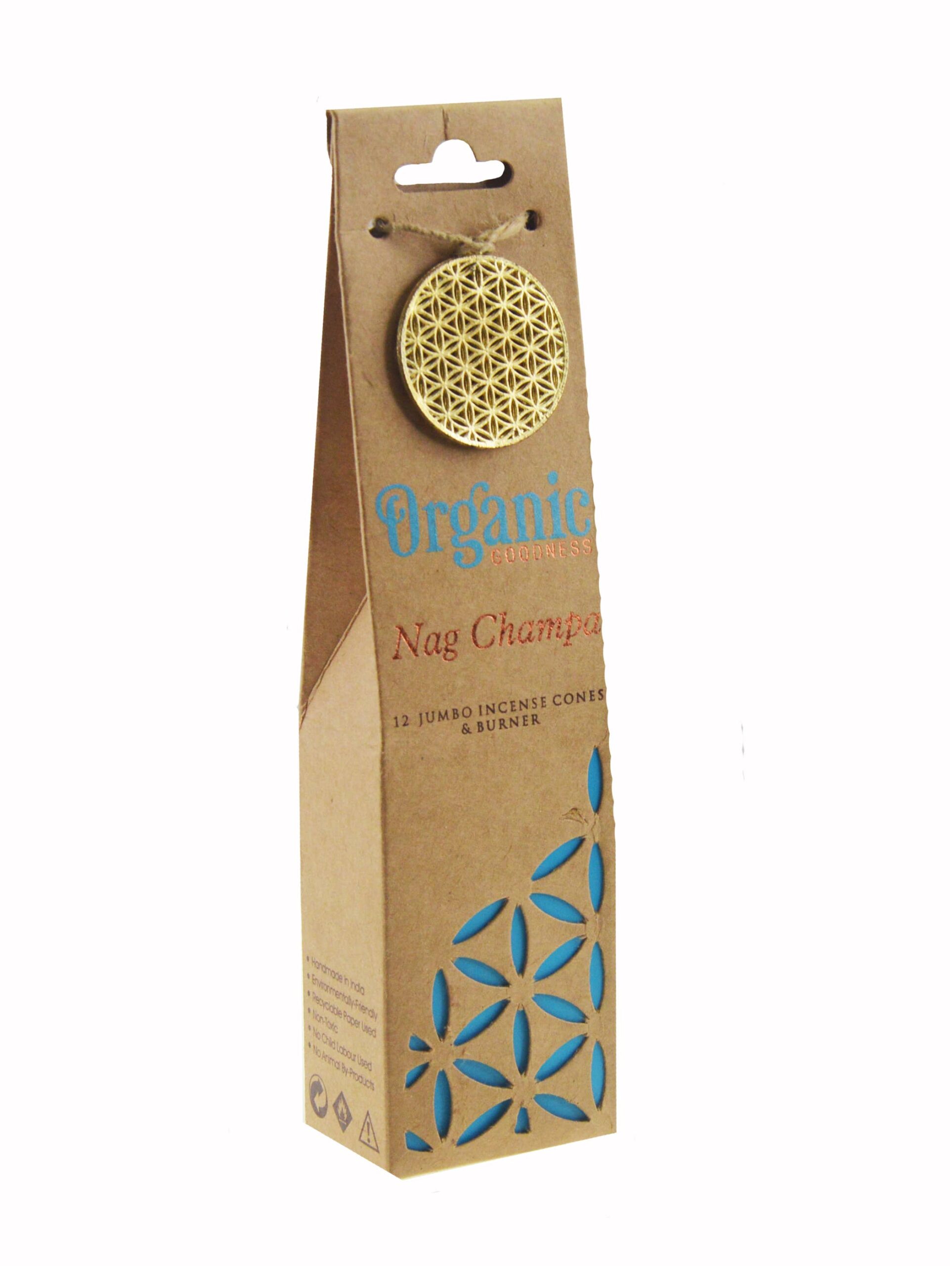 Flower of life metal charm included with ceramic cone burner. Scent: Nag Champa. Contents: 12 cones with ceramin burner. Made with 96% organic material | Non-Toxic | Chemical Free|